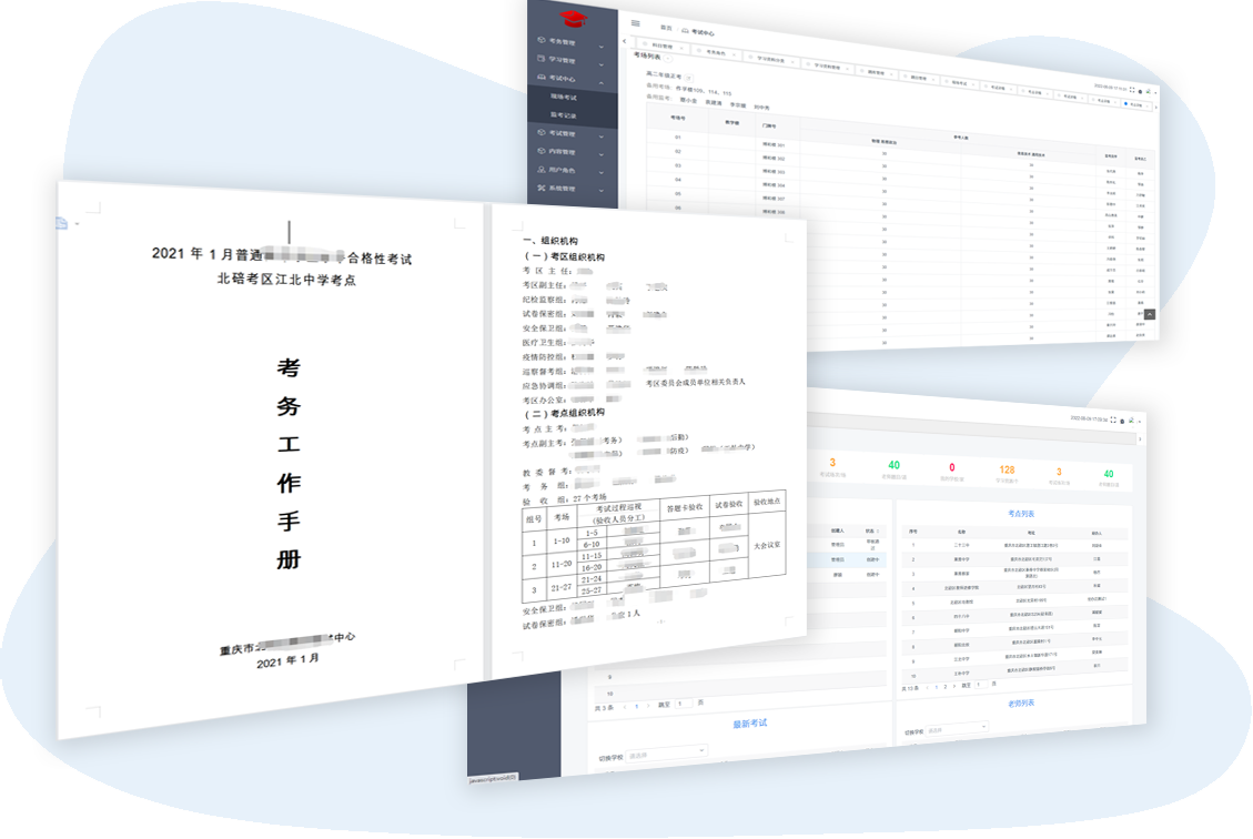 為解決考試中心考場(chǎng)安排和管理難題而推出的考試安排管理系統(tǒng)。幫助考試中心解決監(jiān)考老師無(wú)考前培訓(xùn)記錄、無(wú)合規(guī)性考試記錄、手動(dòng)編排考場(chǎng)安排難、考后數(shù)據(jù)統(tǒng)計(jì)困難的問題。從監(jiān)考老師在線學(xué)習(xí)培訓(xùn)、合規(guī)性考試、考場(chǎng)安排、秩序冊(cè)生成到監(jiān)考記錄導(dǎo)出的全流程功能覆蓋,一站式解決大部分問題。